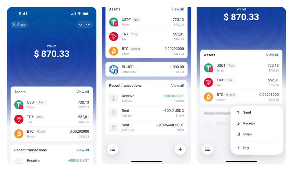 BitHide Mobile Wallet – це кастодіальний гаманець у форматі Telegram-міні-додатку. Компанії можуть надавати такий гаманець своїм співробітникам, підрядникам і партнерам – для отримання зарплат, швидкого доступу до криптовалют і виведення коштів. BitHide Mobile Wallet виходить зі стадії тестування та стає доступним для всіх – це повноцінне рішення для криптовалютних виплат.