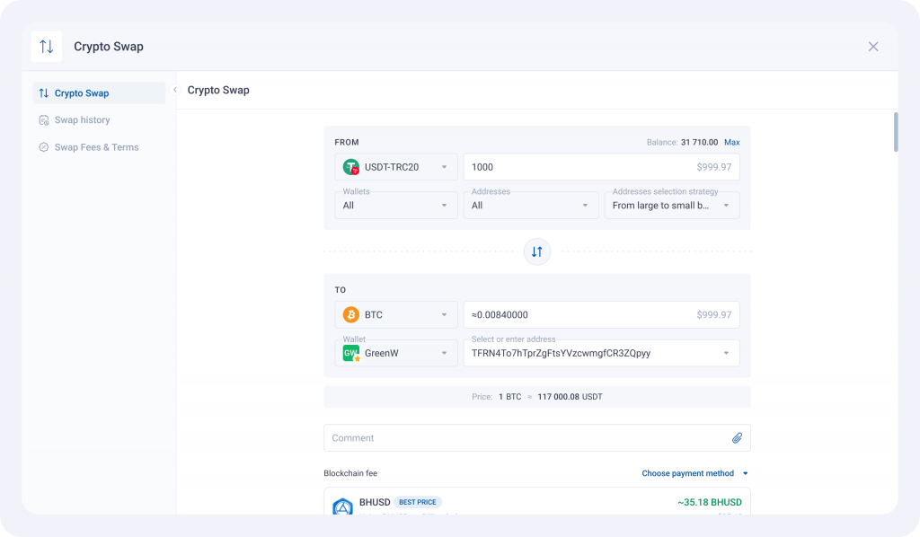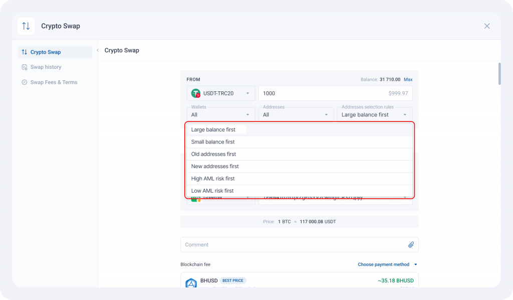 Оновлений Crypto Swap допомагає не лише виконувати обмін, а й контролювати, звідки саме йдуть кошти – відповідно до ваших правил та AML-вимог.