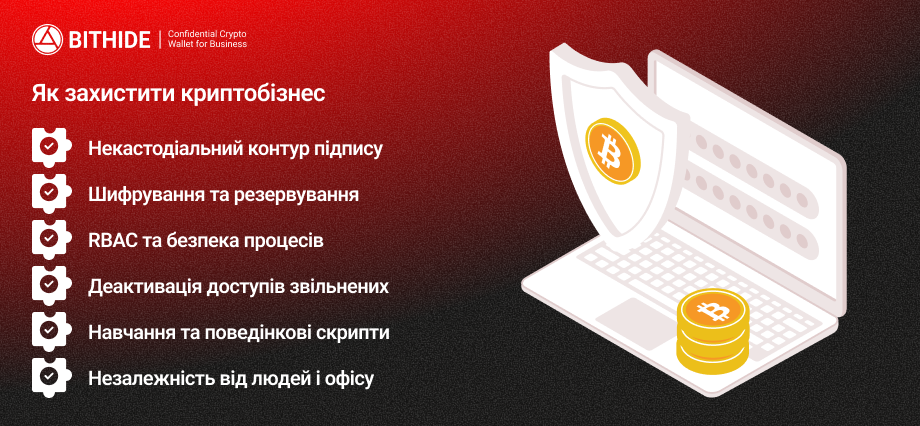 Ключовим фактором стійкості стала некастодіальна архітектура BitHide та сувора операційна дисципліна. Нижче — те, що дозволило бізнесу залишитися на плаву, навіть після фізичного захоплення офісних пристроїв: